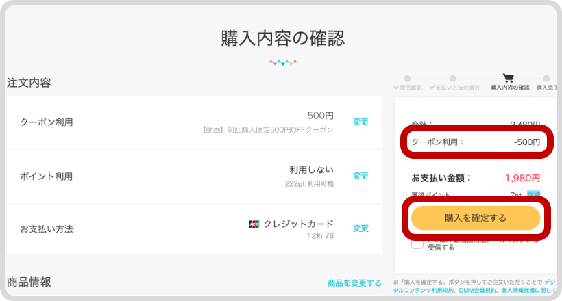 6. クーポンが適用されていることを確認し、「購入を確定する」を押します。