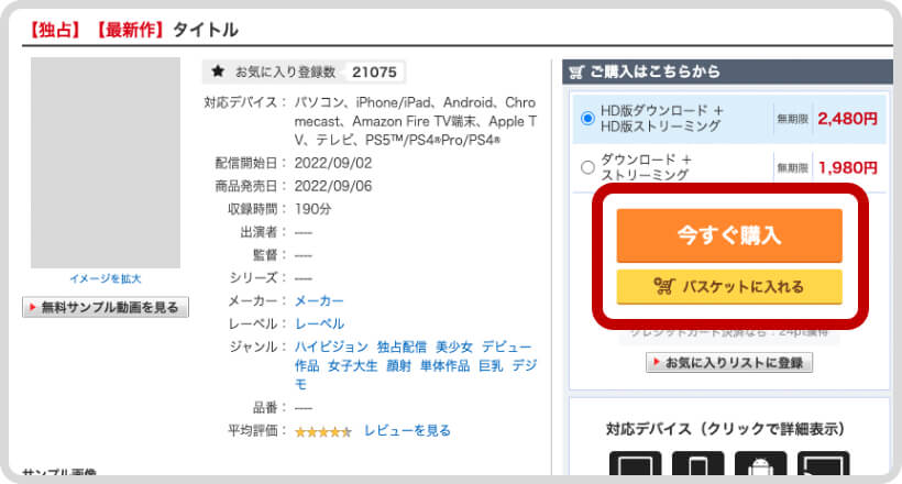 ※「今すぐ購入」はその時点でバスケットに存在している商品とあわせて購入になります。