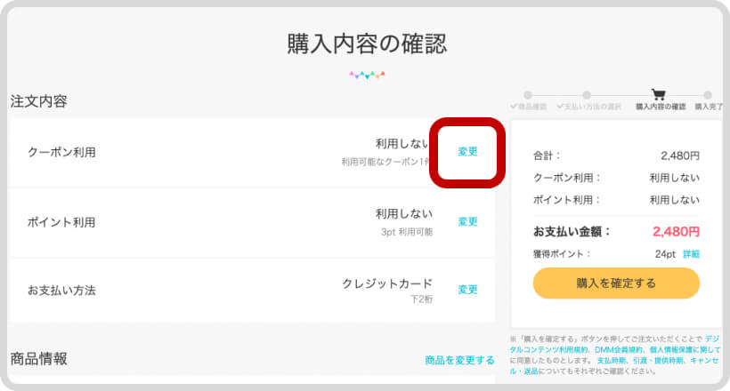 4. クーポン利用の「変更」を押します。